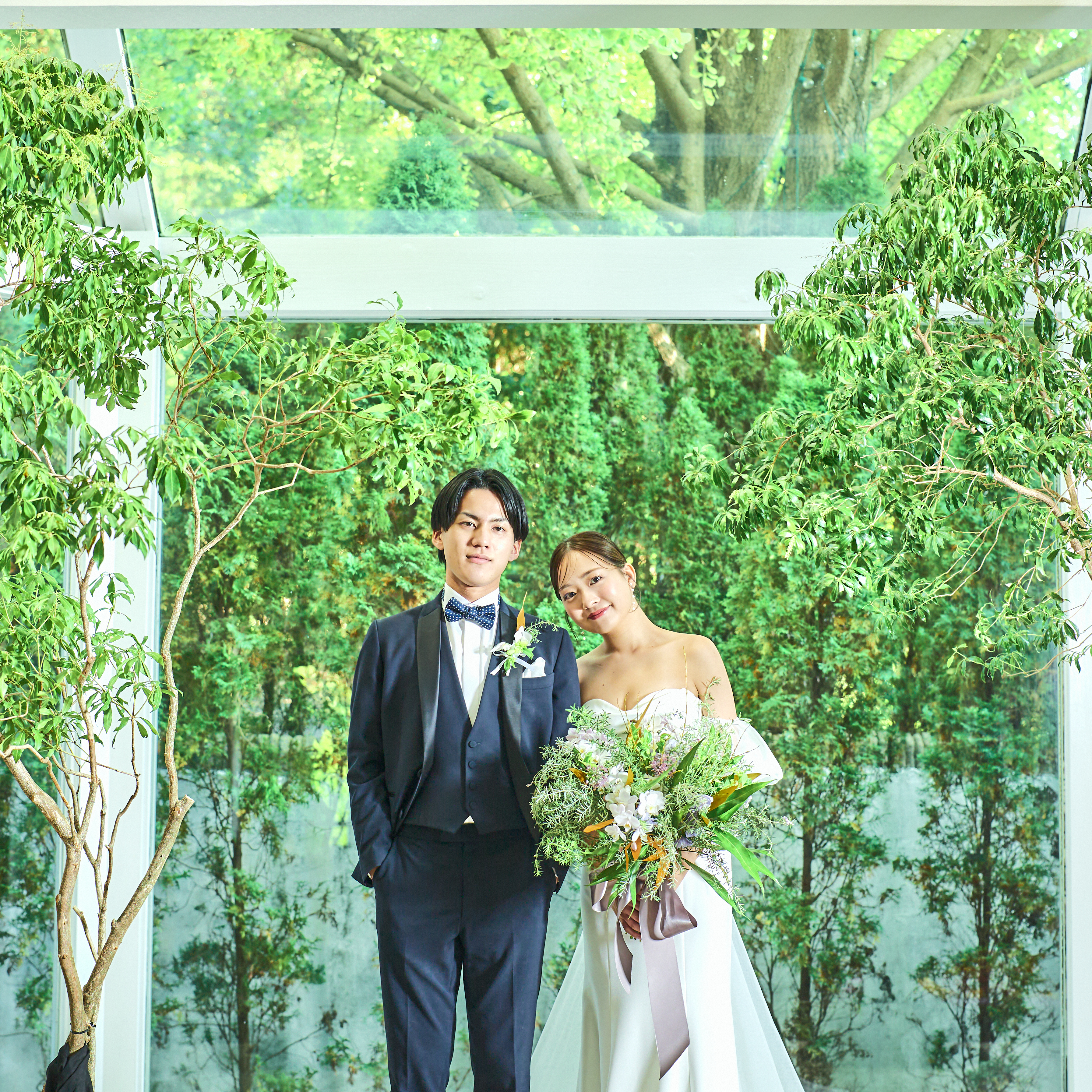 天窓から自然光が降り注ぎ、窓一面に森の木々が一望できるチャペル。大切な誓いの瞬間が、自然溢れる景色とともにゲストの記憶にも刻まれます。