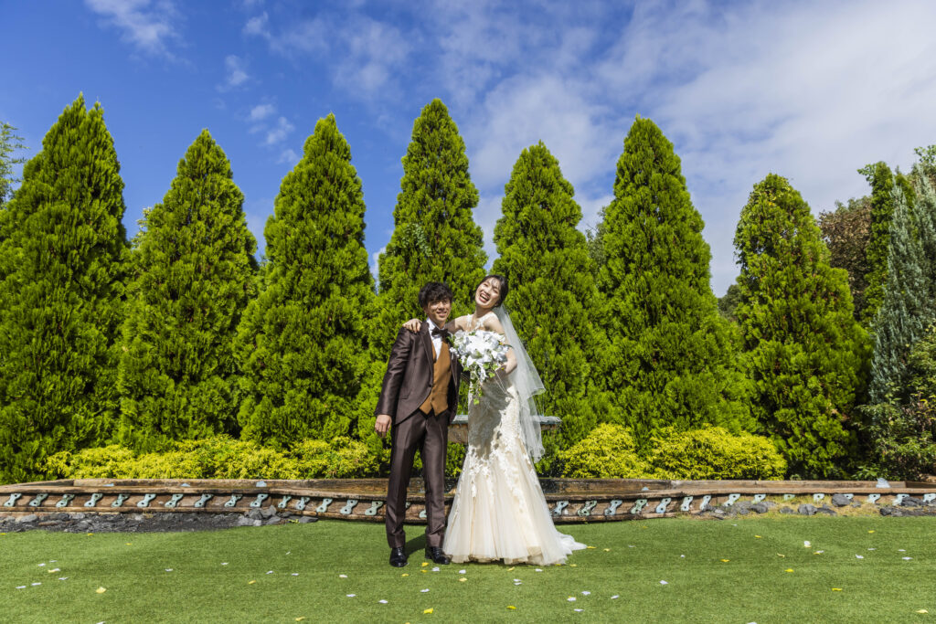 チャペルで撮影時はまだ雨だったのに お二人の笑顔で天気は晴れに☆